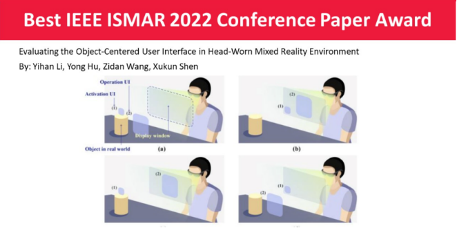 20221017日至21日,混合现实与增强现实领域的顶级国际学术会议IEEE ISMAR 2022The 21st IEEE International Symposium on Mixed and Augmented Reality在新加坡线上线下同时举行。北航偷拍在线 2020级硕士生李一含第一作者)、王子丹沈旭昆教授与胡勇教授共同指导下完成的论文Evaluating the Object-Centered User Interface in Head-Worn Mixed Reality Environment被选为本届最佳会议论文奖。