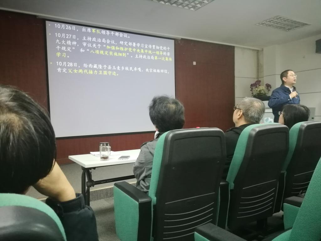 11月6日下午,北航著名思政课教师、马克思学院高宁老师为新媒体教工党支部带来了主题为“谈谈学习十九大精神的一点体会”的精彩党课。党课由沈旭昆教授主持。