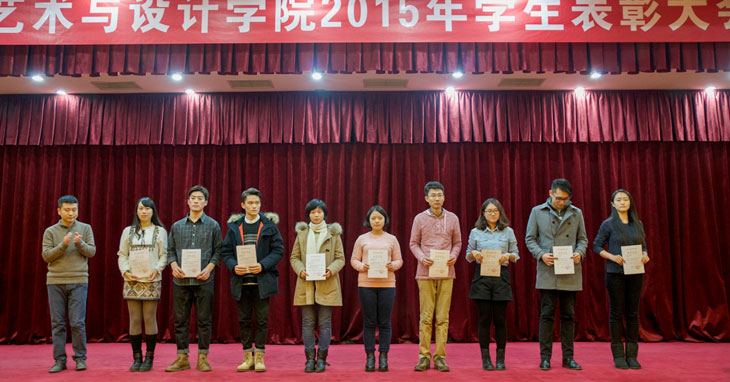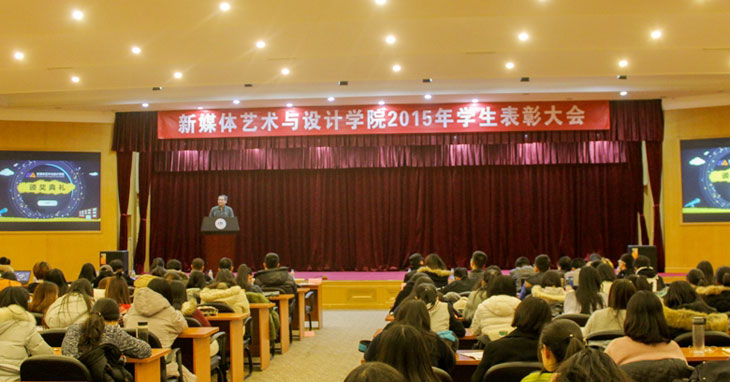 2015年12月30日下午四点半,偷拍在线 2015学生表彰大会在如心会议中心拉开序幕。偷拍在线 院长龙全教授、党总支书记沈旭昆教授、副院长谢正强副教授和叶强副教授、教学督导组组长张雪教授、视觉传达设计系主任王可副教授以及学院各年级班主任和辅导员出席表彰会。