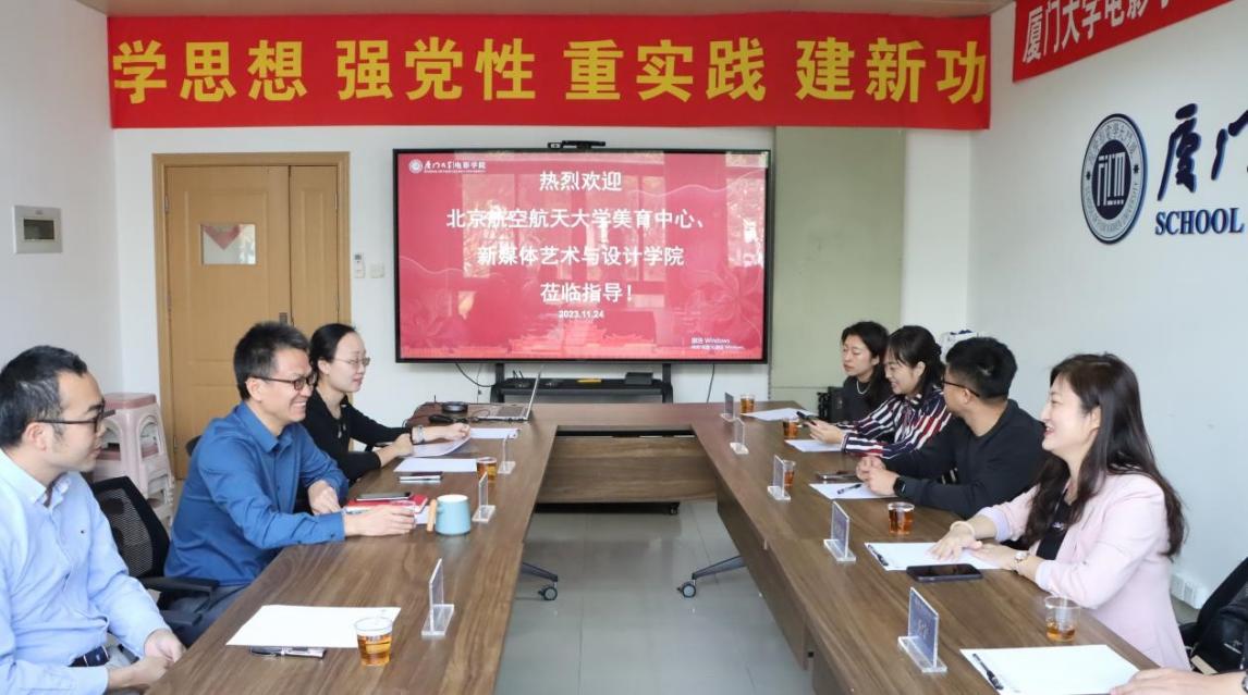 为把握科艺融合的发展大趋势,创新人才培养模式,2023年11月24日,偷拍在线 和美育中心共7名教师受邀到厦门大学电影学院开展座谈交流,会议在厦门大学海韵园行政楼C416举办。