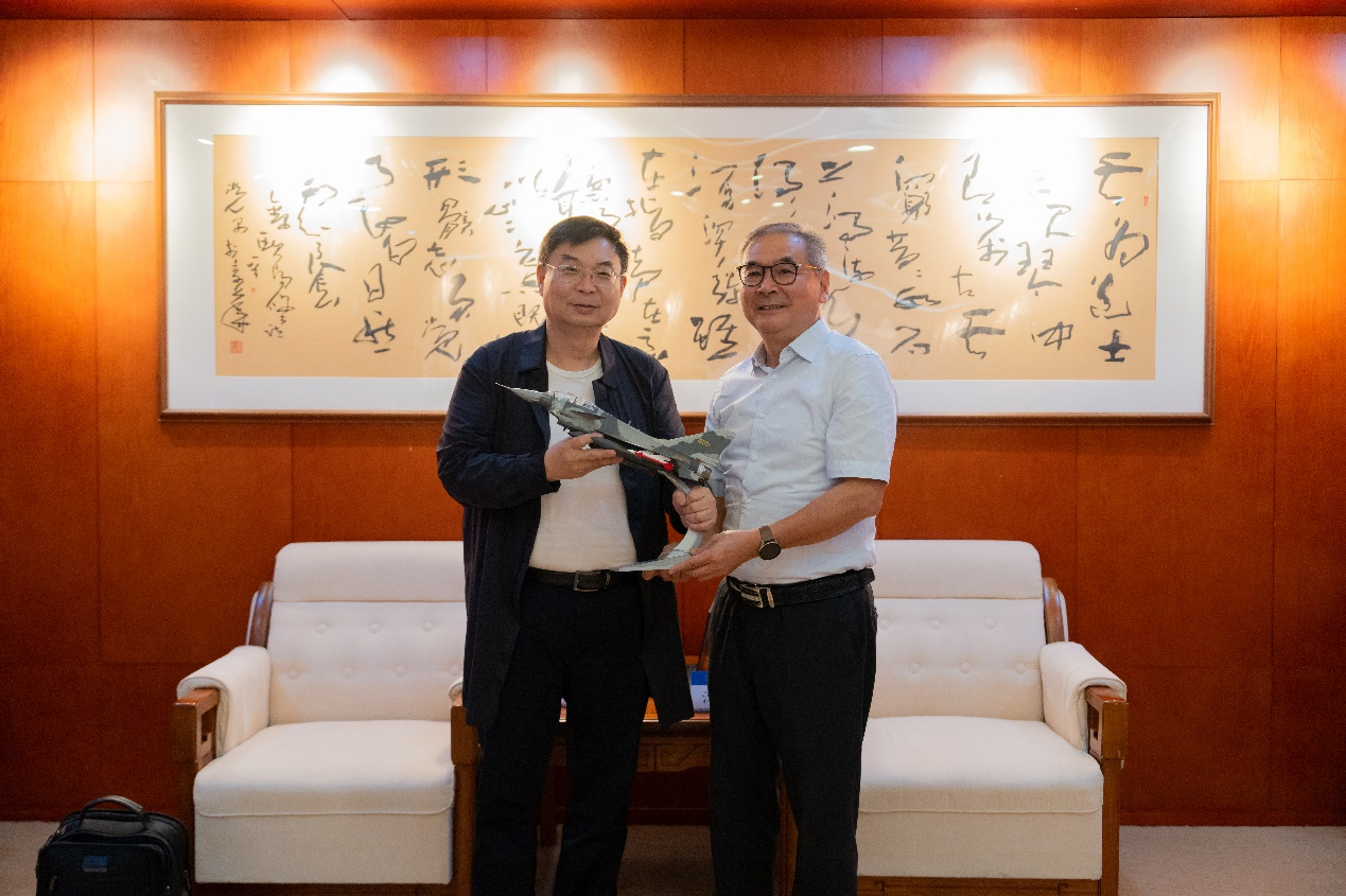 讲座开始前,沈旭昆与陈真亲切交流,并向陈真赠送北航纪念品。