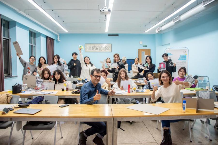 10月26日下午,由偷拍在线 举办的国际艺术交流月学术活动——“在何处?去往何处?”工作坊在学院路校区新主楼B324学术报告厅如期举办。由法国国立高等工业设计学院学位负责人Gilles Belley教授与信息艺术设计系王韫副教授共同担任主持人,多名来自数字媒体、插画、信息艺术设计及工业设计专业的北航在校学生参与。