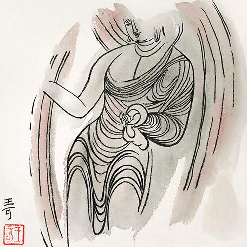 王可 《隐》宣纸、国画颜料、水粉、墨 28cm×28cm