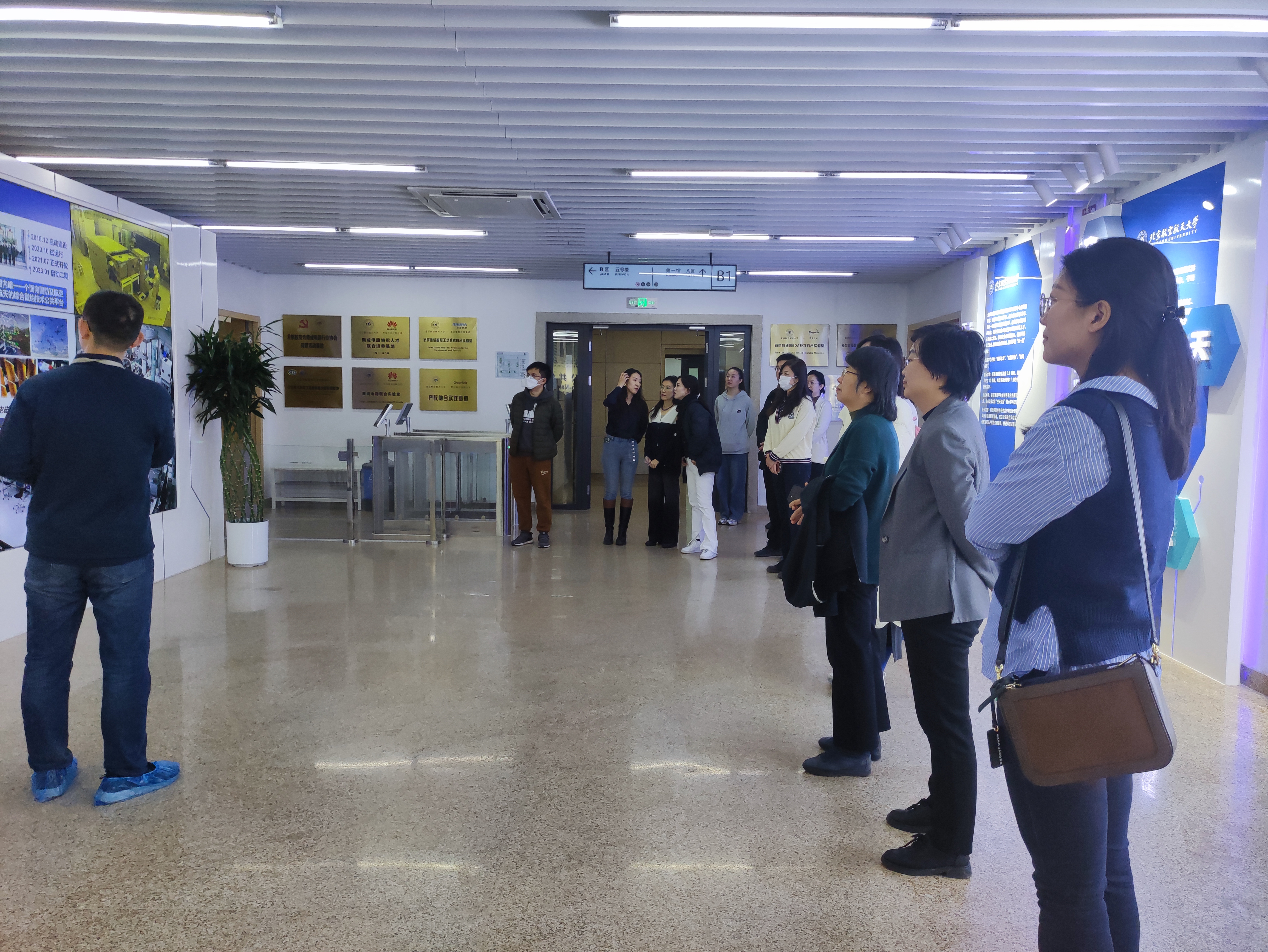 在实地考察环节,高静书记亲自陪同参观了集成电路学院院属空间,并现场解答了老师们的问题。考察结束后,学院集体前往北航微纳中心参观学习,了解微纳中心如何围绕国家重大需求,聚合北航优势力量,为党和国家输送大批卓越工程师和科技人才、努力实现高水平科技自立自强。学院教职工第一次近距离参观北航科教协同创新平台,拓展视野的同时,更加深刻感受到北航师生以服务国家重大需求为己任,以“空天报国”的实际行动践行着北航精神。