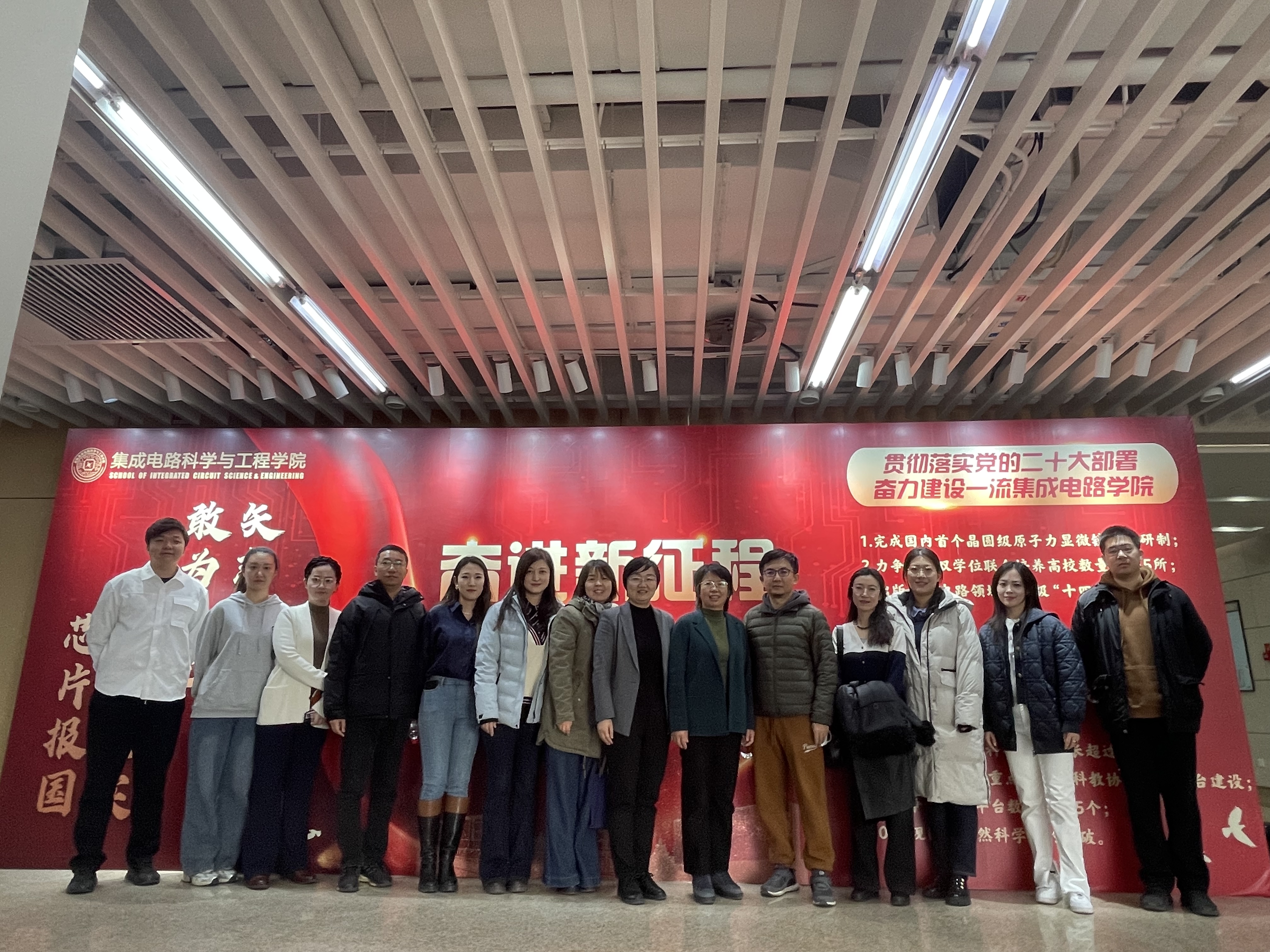 2023年12月7日,学院党委书记王群、院长沈旭昆带领党政领导班子、各系/中心主任等人,赴集成电路学院调研学习,围绕学院党的建设、人才培养、空间利用、学生管理等方面进行了深入交流。