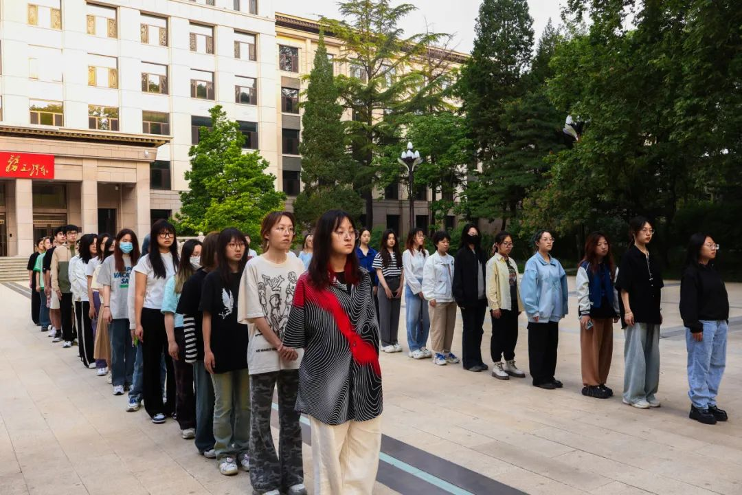晨光熹微,微风徐徐,5月9日的清晨,新媒体232611班和232612班团支部准时来到老主楼前进行升旗仪式。伴随国歌庄严的旋律,两名升旗手将鲜红的旗帜升起。升旗环节结束后,董烨同学就五四青年节这个契机,向同学们发表国旗下讲话。学习五四精神,对于团员来说不仅是牢记历史责任,也是延续青春的担当与使命。