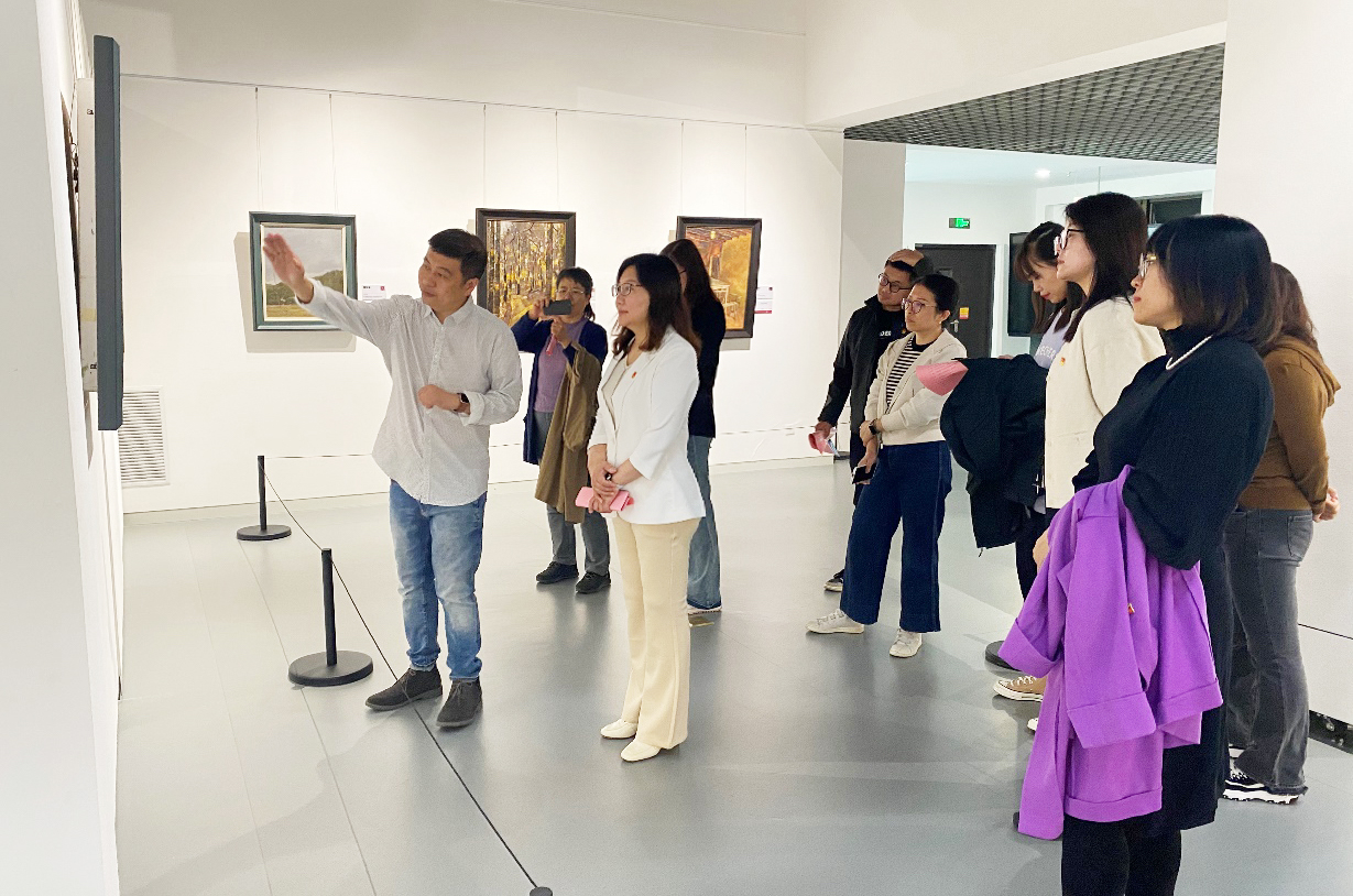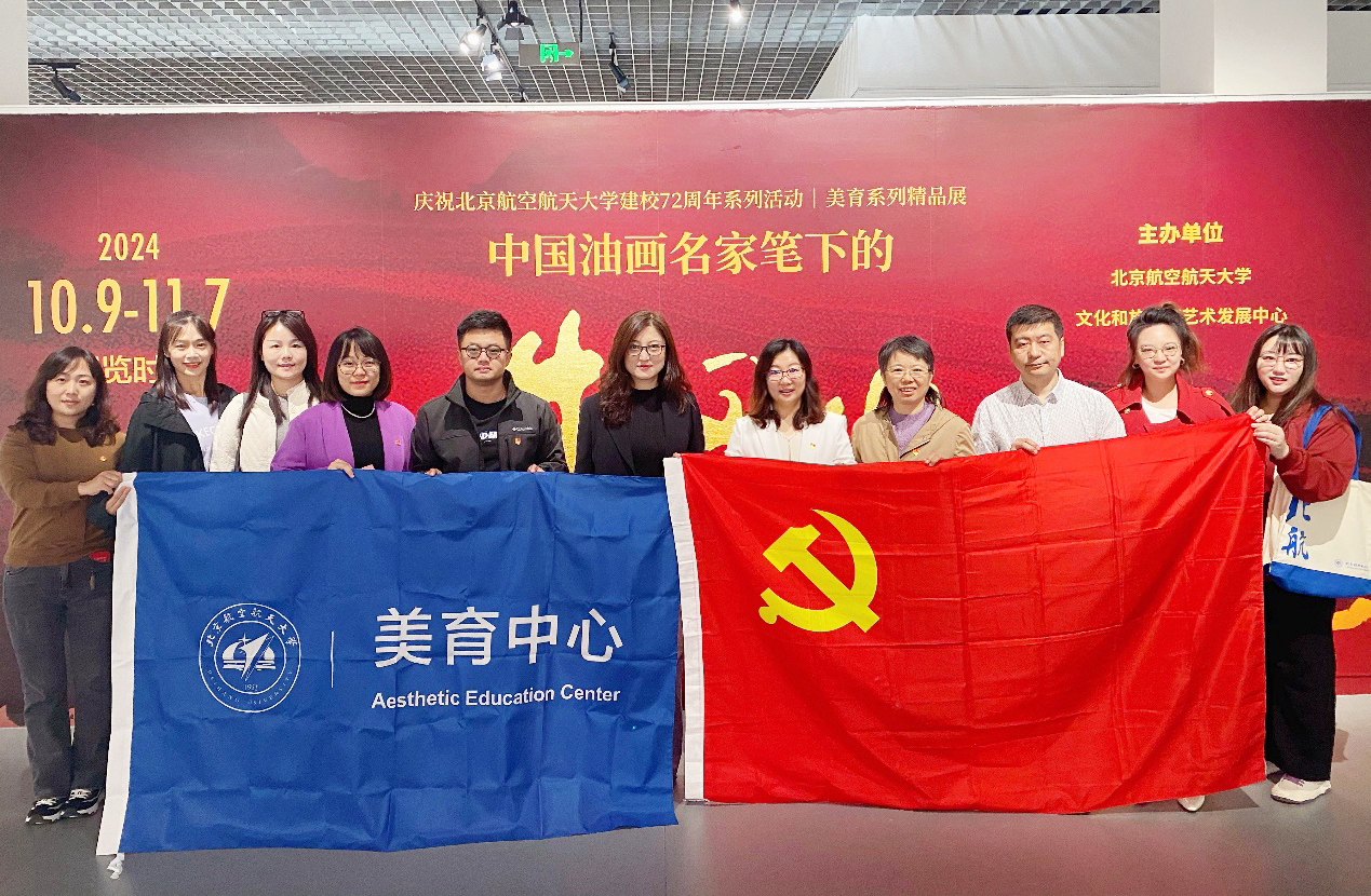 负责人及美育中心党员教师参观在北航艺术馆(逸夫科学馆五层)展出的美育系列精品展——中国油画名家笔下的井冈山。