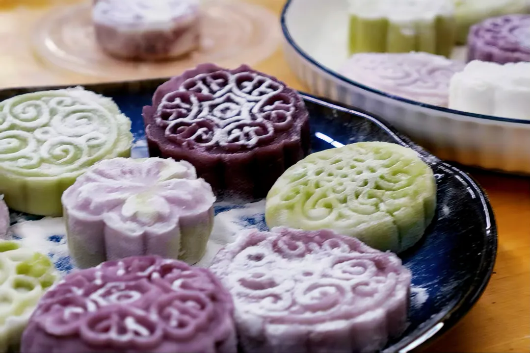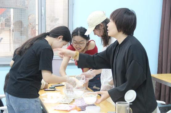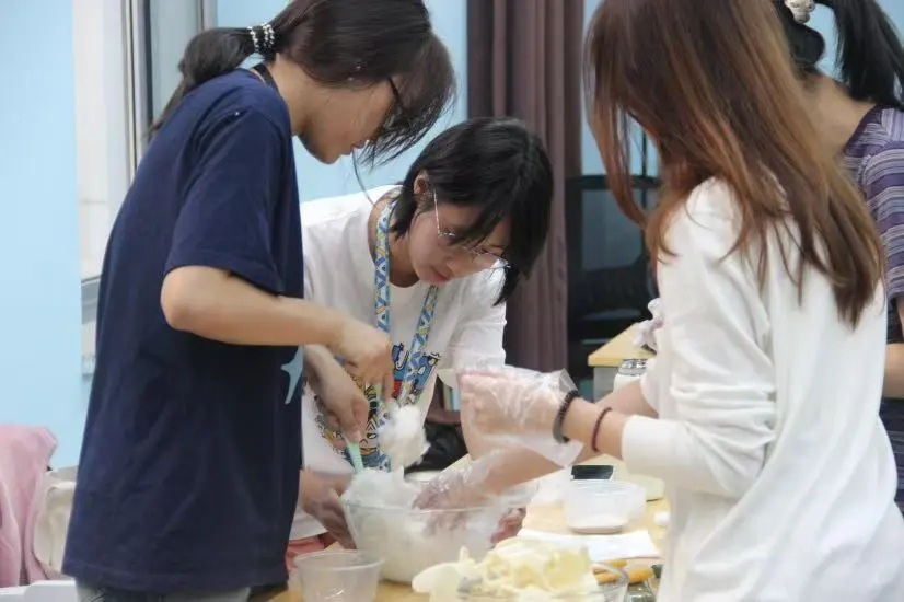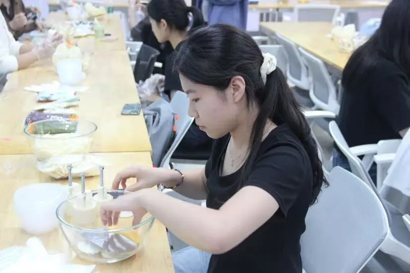 原来揉冰皮要掌握好力度,才能让月饼皮更细腻!”“这个玉兔造型的模具太可爱了,我要给家里孩子做几个!活动现场氛围热烈而温馨,师生们热情高涨,纷纷动手尝试。有的教职工专注地捏制冰皮,小心翼翼地包裹馅料,确保月饼造型完整;有的则发挥艺术创意,用不同颜色的冰皮搭配出渐变效果,或是在月饼表面印上中秋快乐”“艺院同心等字样,让小小的月饼承载满满的心意。不一会儿,一个个造型精致、色彩诱人的冰皮月饼便新鲜出炉,大家拿着自己的作品拍照留念,脸上洋溢着成就感与幸福感。